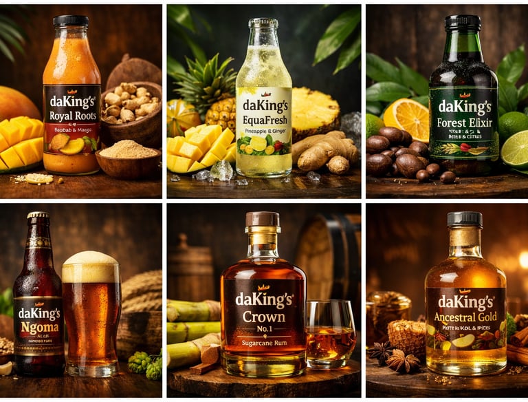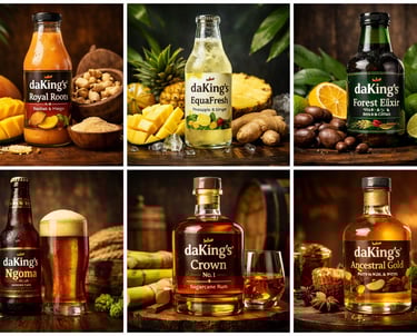 daKing’s™ is not merely a beverage supplier; it is a cultural statement and economic platform. The brand is designed to transform Africa’s raw agricultural and botanical resources into high–value finished products, positioning Central Africa as a producer of refined, globally competitive beverages rather than a supplier of raw materials.