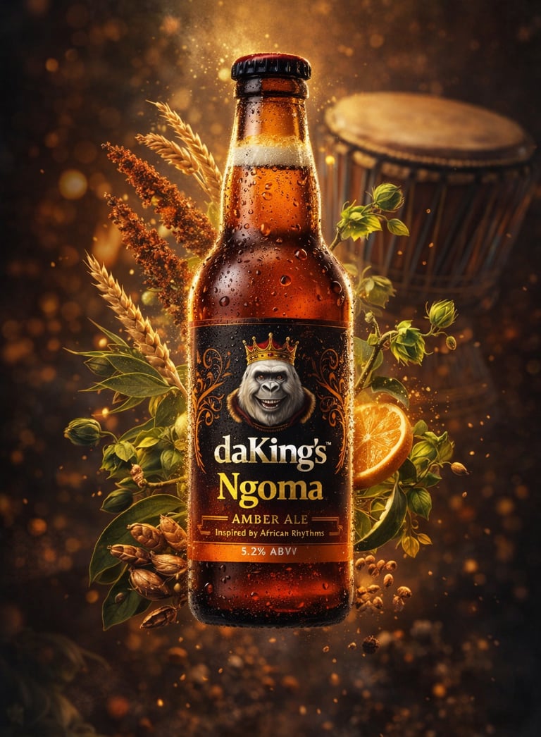A smooth, full-bodied craft beer inspired by African rhythms (“Ngoma”), brewed with selected grains and tropical notes.