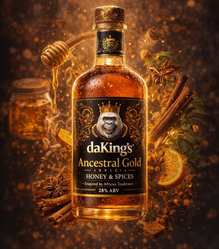 A smooth liqueur blending forest honey, warm spices, and subtle herbal tones inspired by Central African traditions.
