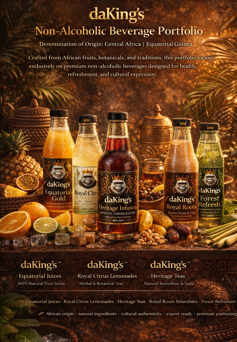 Crafted from African fruits, botanicals, and traditions, this portfolio focuses exclusively on premium non-alcoholic beverages designed for health, refreshment, and cultural expression.